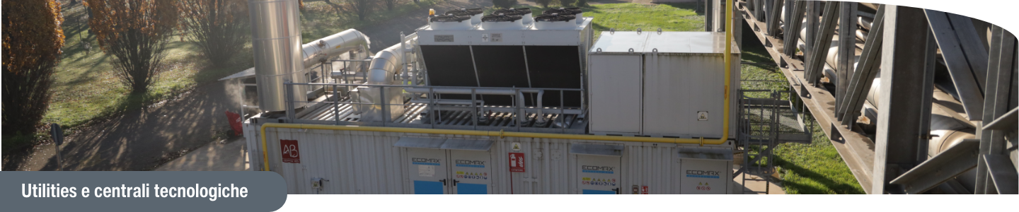 Le centrali con le utilities a servizio della produzione, centralizzate, sono in grado di fornire allo stabilimento energia, acqua calda, vapore, acqua refrigerata e aria compressa attraverso i seguenti impianti: